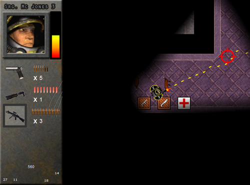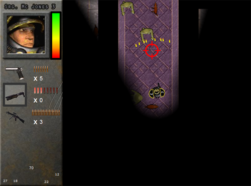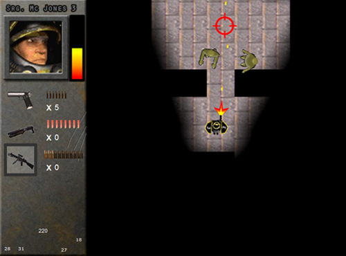 In diesem Projekt war ich primär als Grafiker zuständig und habe den Hintergrund des HuDs, sowie sämtliche Charaktere und Objektgrafiken selbst erstellt. Lediglich die Bodentextur habe ich hierfür aus Warcraft III entnommen. Das Profilbild und die Waffenbilder sind aus dem Internet.