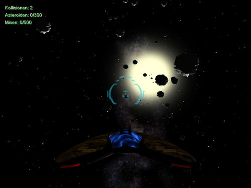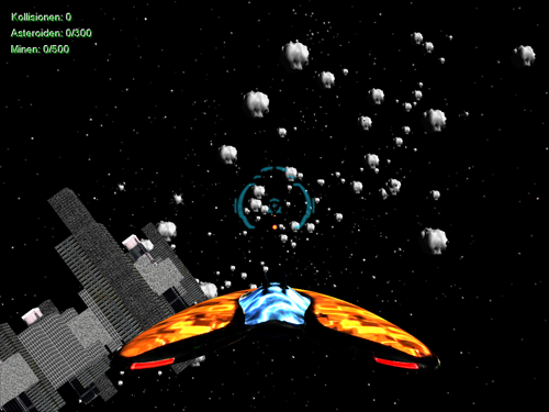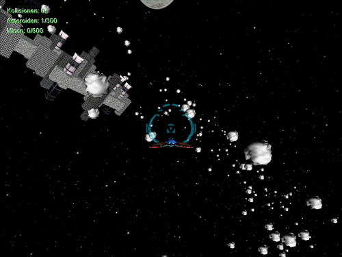 Als Grafiker war es meine Aufgabe, das Raumschiff sowie die Asteroiden und Minen zu modellieren und zu texturieren. Dazu standen mir Cinema 4D und Photoshop zur Verfügung.